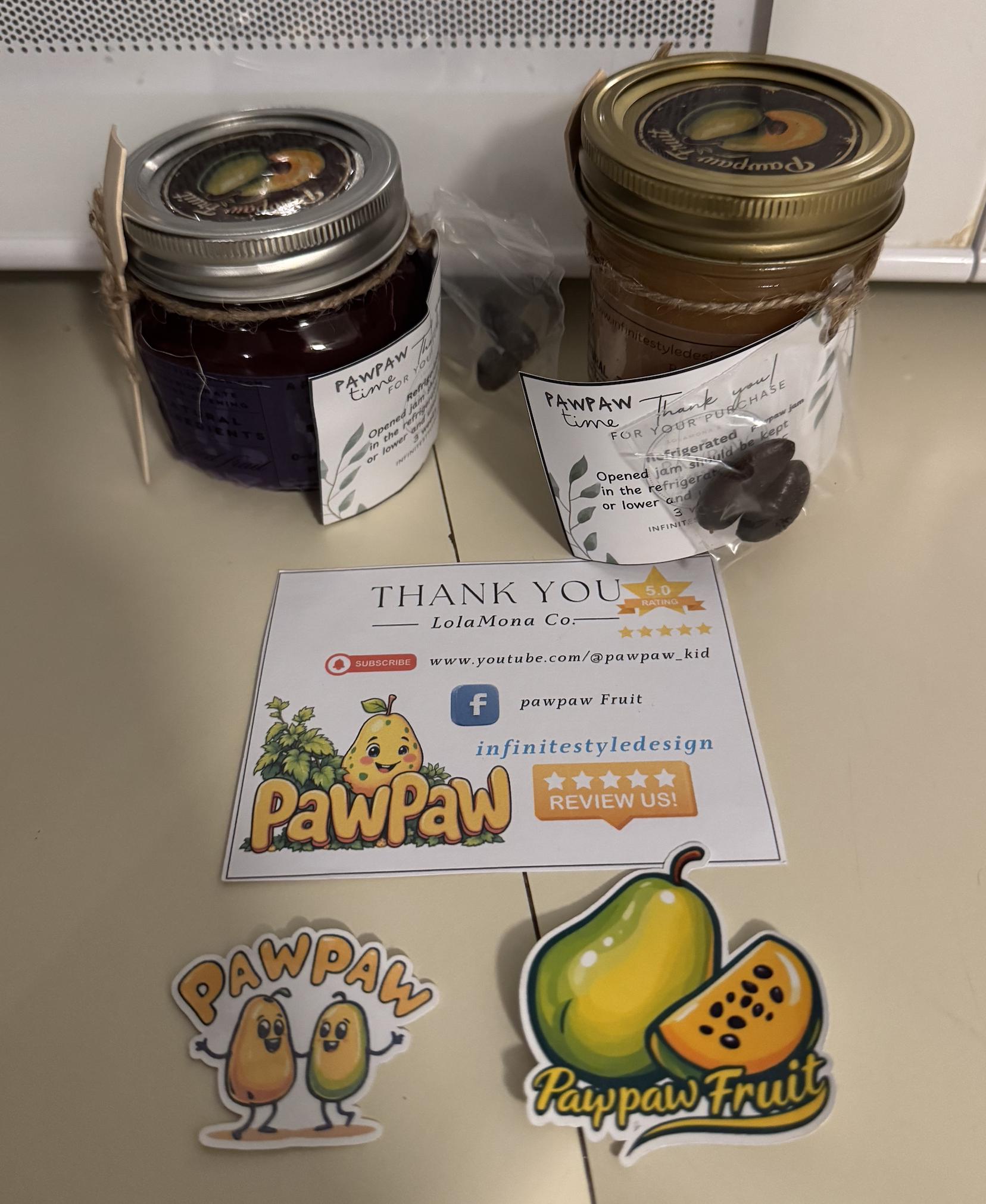 This paw paw jam is absolutely amazing! You can tell how much care and effort went into every detail. The jars were beautifully wrapped with custom fruit labels, and the package even included a thank-you card and the cutest paw paw stickers. The jam is delicious - fresh, rich with a unique flavor. I’m so happy with this purchase and will definitely be ordering again. Highly recommend this shop to anyone who wants something both delicious and made with heart!